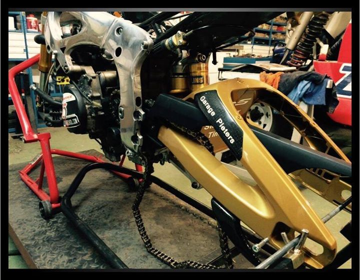 De motor is ook helemaal nagezien en we verwachten met een compleet nieuwe voorkant dat de motorfiets veel vertrouwder aanvoelt. Want soms was er een limiet aan de motorfiets wat het afstellen van de vering betrof. De UPSIDE DOWN vering van K-tech moet hier het verschil gaan maken. De Ohlins achterveer die er al opzat blijft zitten. Op dit moment beschikken we over een donor fiets uit 2007 waar we onderdelen mee uitwisselen. Deze motor gaat ook mee naar het circuit om extra training te kunnen pakken met de 2 rijders. Ook zitten er compleet nieuwe remmen op de motor en grotere schijven. De rempomp blijft een brembo radiaal. Het blok bevat ook allemaal nieuwe onderdelen maar het blijft hetzelfde blok, een aangepaste R6 uit 2003.
